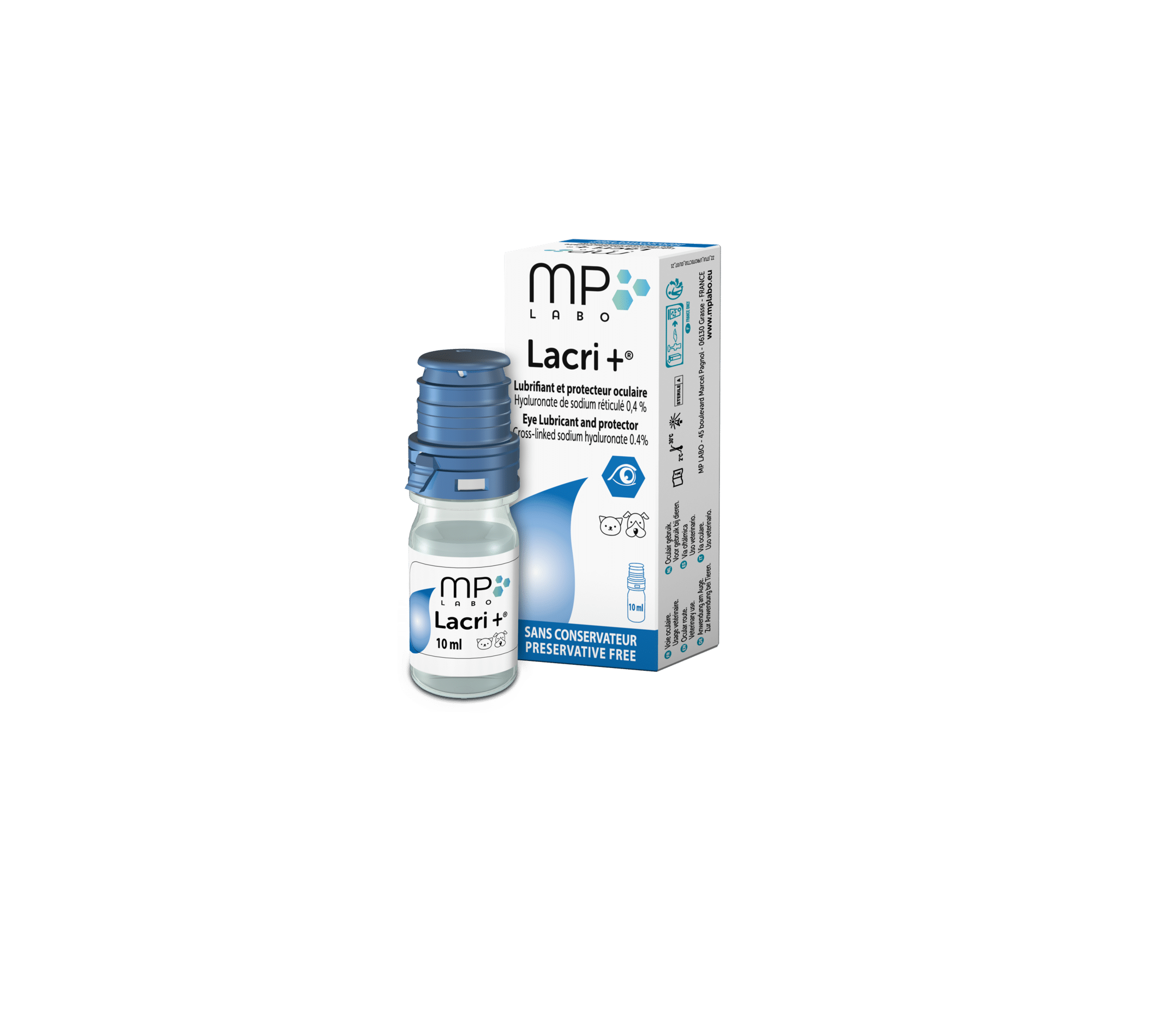Lacri + 10 ml silmätipat koirille ja kissoille sisältävät 0,4% ristiinsidottua hyaluronihappoa, joka hypotonisena ja viskoosina aineena sitoo kosteuden silmän pintaan tehokkaasti. Lacri+ tipat on pakattu monikäyttöpulloon ja liuos on säilöntäaineeton. Se on avaamisen jälkeen käyttökelpoinen 3 kk ajan pullon suodatinmekanismin ansiosta. Pullo sisältää noin 200 tippaa. Lacri+ hyaluronihappo silmätipat sopivat käytettäväksi tarvittaessa tai säännöllisesti pitkäaikaisemmankin silmän kuivuuden ja häiriötilojen yhteydessä. Tipat sopivat myös kausittaiseen käyttöön esim. katupölyn ja tuulen aiheuttamien ärsytystilojen yhteydessä ja tarvittaessa tukihoitoa huolehtimaan kyynelnesteen voitelevuudesta.